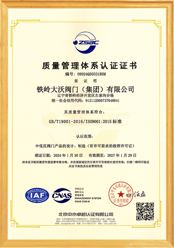 鐵嶺大沃閥門(mén)(集團(tuán))有限公司,是原鐵嶺閥門(mén)廠改制后,以原國(guó)有企業(yè)各領(lǐng)域的骨干精英為核心所組建的創(chuàng)新型企業(yè)。公司在傳承老“鐵閥”所積淀的“管理嚴(yán)格、質(zhì)量第一”精神的同時(shí),將“以客戶(hù)為中心,市場(chǎng)為導(dǎo)向,科技創(chuàng)新為支撐”作為發(fā)展理念;將“修為礪器,誠(chéng)信匠心”作為核心價(jià)值觀。在近十年的發(fā)展歷程中,鐵嶺大沃人通過(guò)不懈地探索和創(chuàng)新,逐步形成了獨(dú)特的經(jīng)營(yíng)模式及核心競(jìng)爭(zhēng)力。成為遼寧省企業(yè)廳命名的省級(jí)創(chuàng)新型企業(yè);成為通過(guò)ISO 9001質(zhì)量管理體系、ISO14001環(huán)境管理體系和ISO 18001職業(yè)健康安全管理體系認(rèn)證,以及特種設(shè)備制造許可證認(rèn)證......